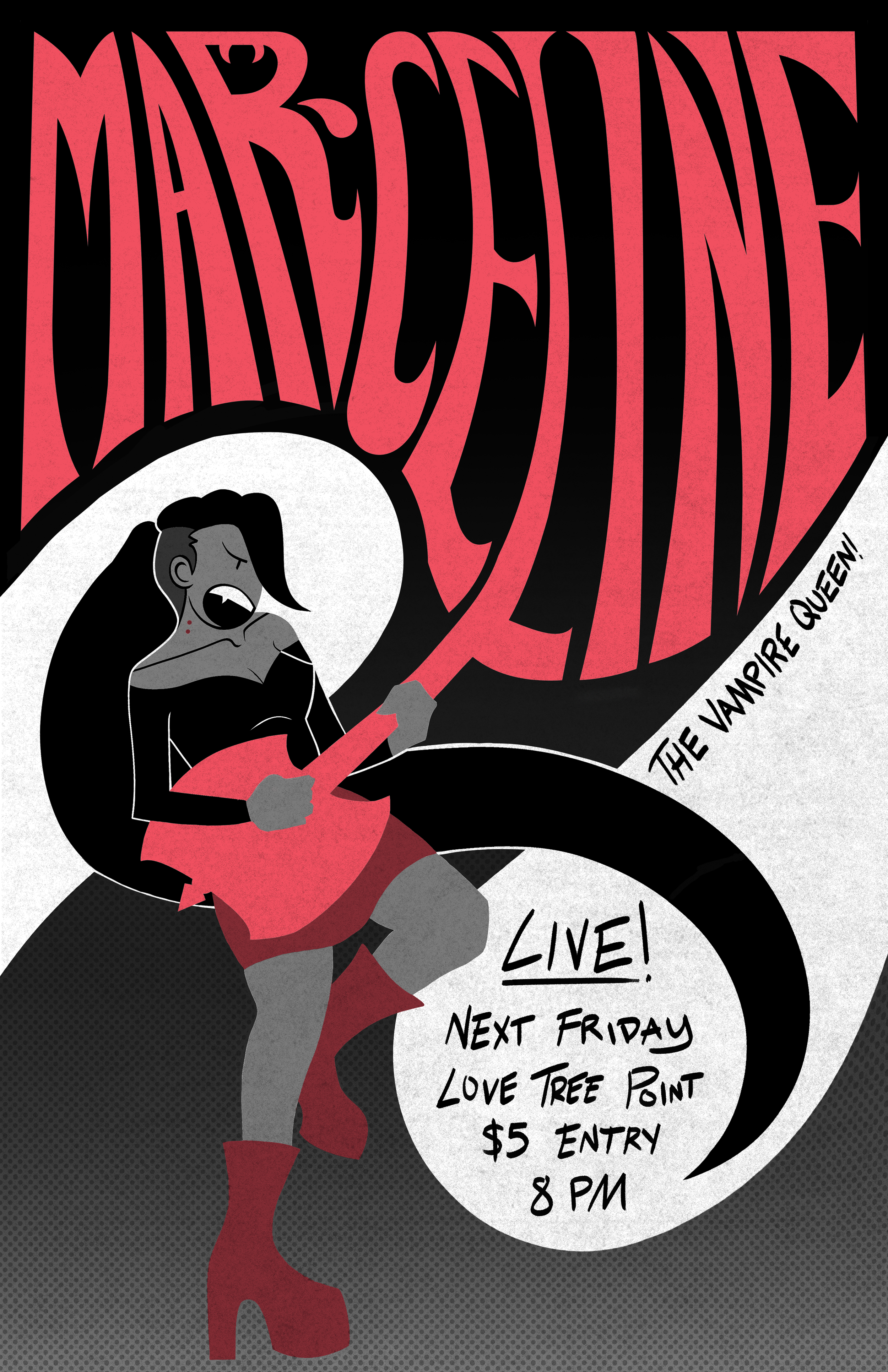 Marceline belongs to Cartoon Network. Risograph print. Made with Photoshop. 2023.
